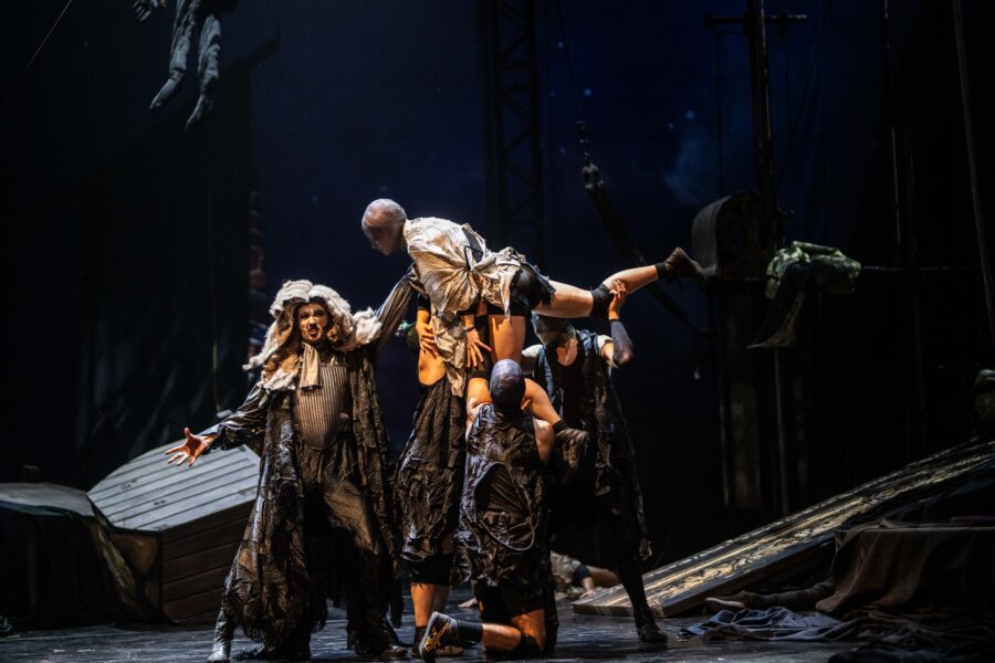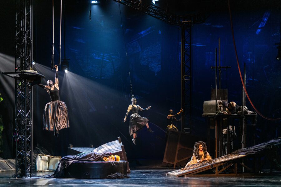 The combination of singing and circus was considered exceptional. ArtsTalk Magazine wrote: “Maria Schellenberg as the Queen of War sang beautifully despite having to do the first few minutes balanced on a small platform halfway up a rigging pole. Maud Bessard-Morandas was excellent as The Sun, who also fearlessly demonstrated her trapeze skills.” The trapeze work and rope climbing by the circus artists were also described as “excellent.”